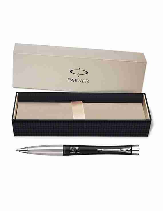 Ультрасовременная ручка нового поколения Parker Urban с логотипом компании из новой серии сувениров Coral Business.
