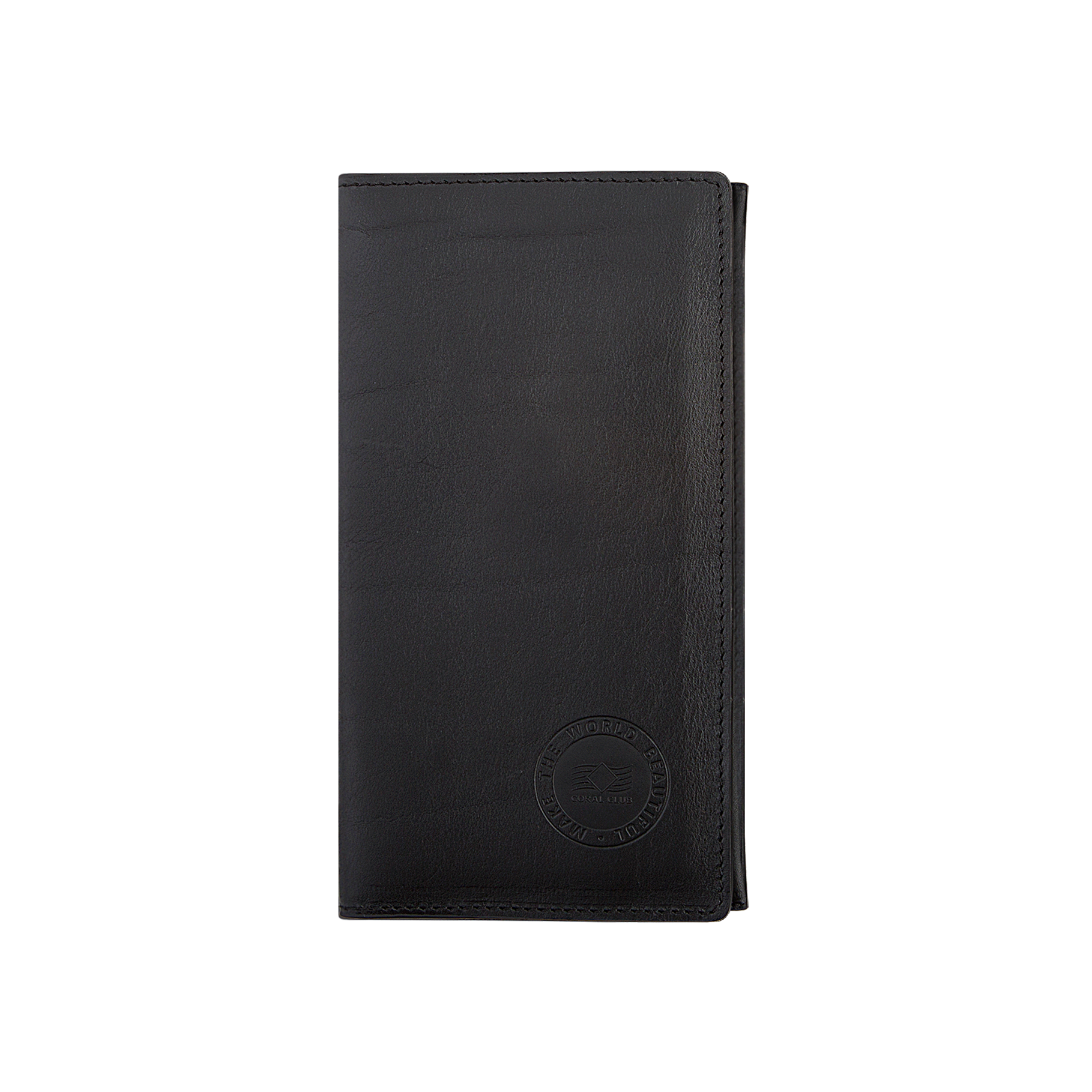 Портмоне выполнено из кожи черного цвета, по лекалам, разработанным специально для Coral Club, абсолютно универсально и подходит как для мужчин, так и для женщин.