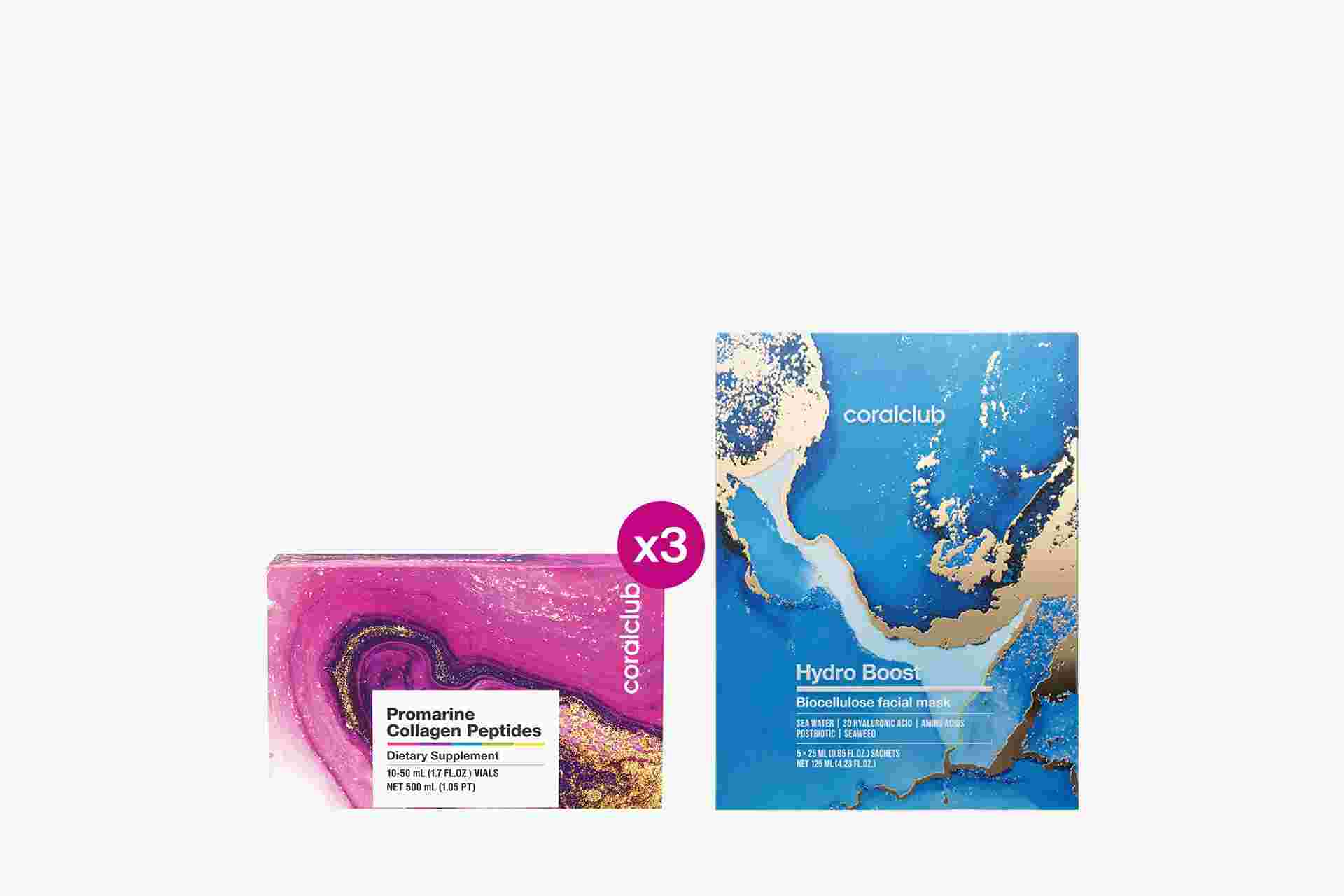 Набор Промарин Пептиды Коллагена (курс на 1 месяц) & маски для лица биоцеллюлозные HydroBoost (5 саше)